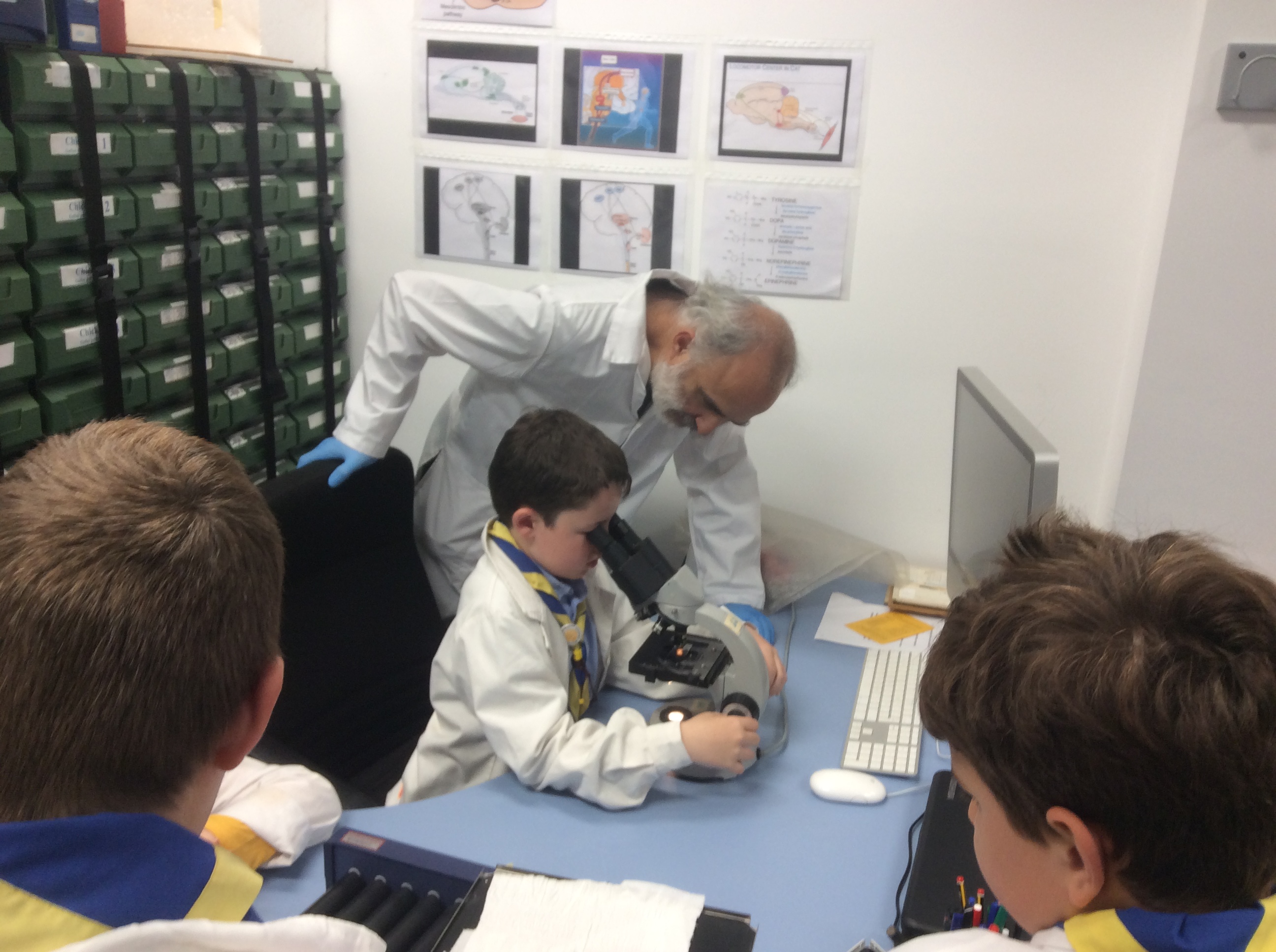 El grupo scout Lobatos de Santa María de Gracia ha visitado los laboratorios del equipo de 'Segmentación Cerebral y Genes del Desarrollo', ubicados en el Edificio LAIB. La iniciativa de la visita partió de los propios estudiantes de Primaria como parte de una serie de actividades relacionadas con la ciencia. Los jóvenes scouts pudieron conocer de primera mano cómo se trabaja en un laboratorio de Neuroanatomía, así como el funcionamiento y organización del IMIB-Arrixaca, guiados por los investigadores José Luis Ferrán Bertone, Miroljub Popovic Popovic y María Caballero Bleda.