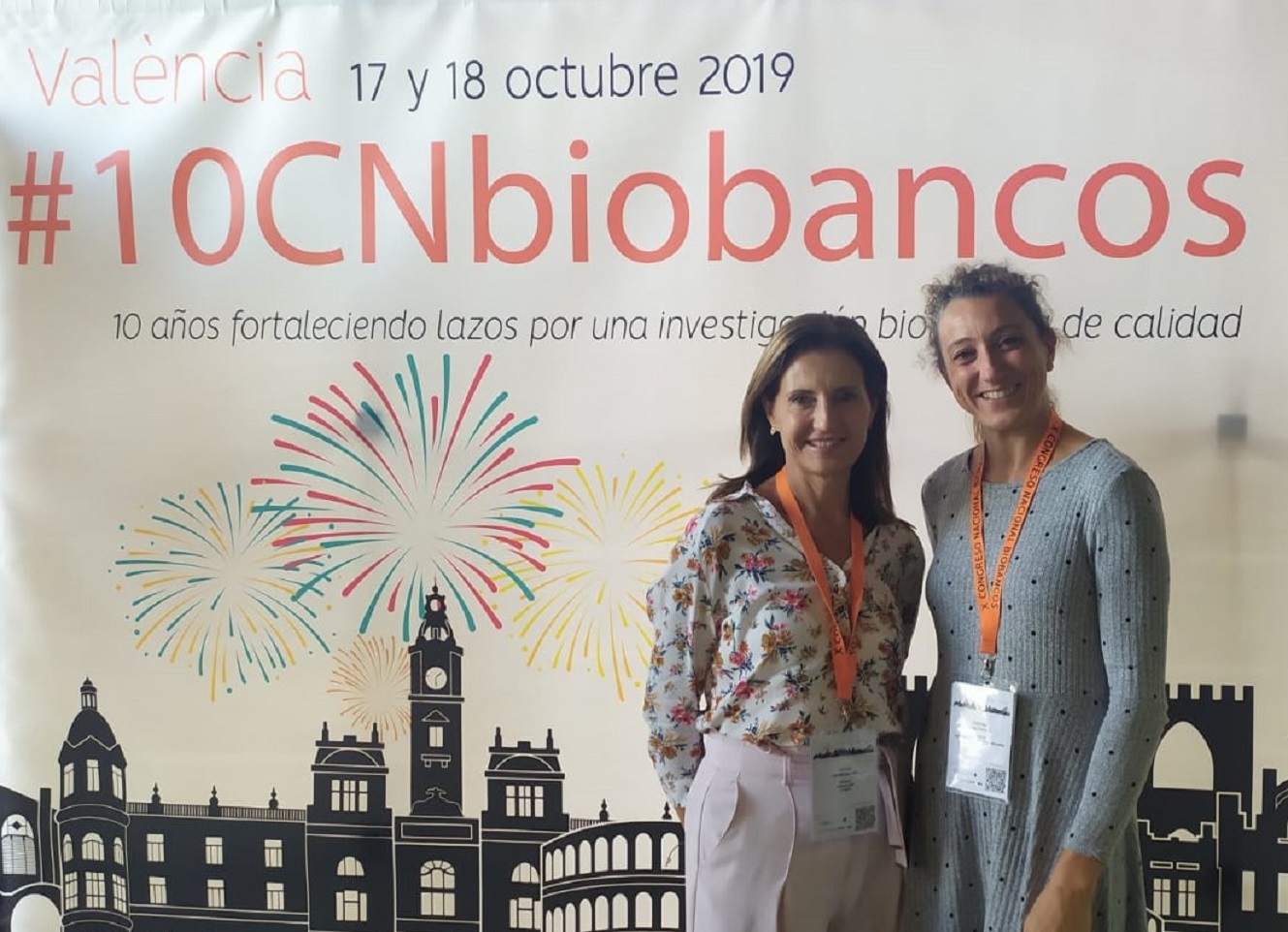 De izquierda a derecha, Teresa Escámez, Coordinadora Científica de Biobanco IMIB y Cristina Villena, Coordinadora de la Red Nacional de Biobancos.