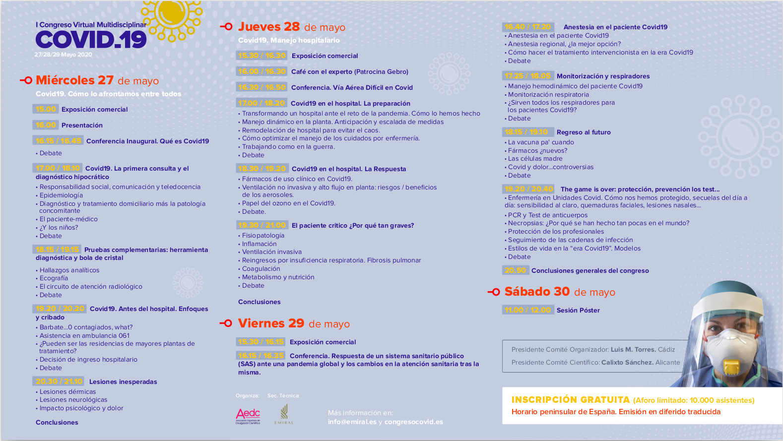 · Inscripciones gratuitas en: https://www.congresocovid.es/inscripcion_798755330.html.