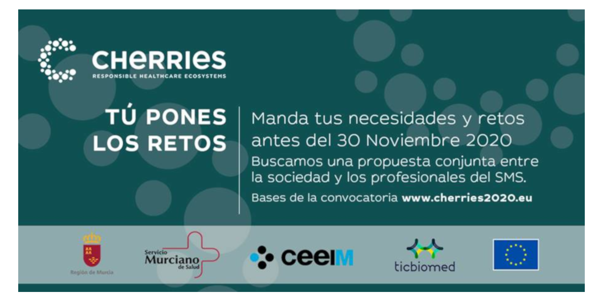 Durante los pasados días 28 de octubre y 4 de noviembre los socios del proyecto europeo CHERRIES en la Región de Murcia: Servicio Murciano de Salud, Dirección General de Unión Europea – Región de Murcia, Ticbiomed y CEEIM organizaron dos jornadas virtuales informativas de identificación de restos en salud. Su objetivo era presentar las oportunidades que ofrecerá el proyecto CHERRIES a los distintos grupos de interés a la hora de participar en esta primera convocatoria dirigida a proponer, junto a un grupo de profesionales del SMS, un reto sanitario a solucionar en nuestra Región.
