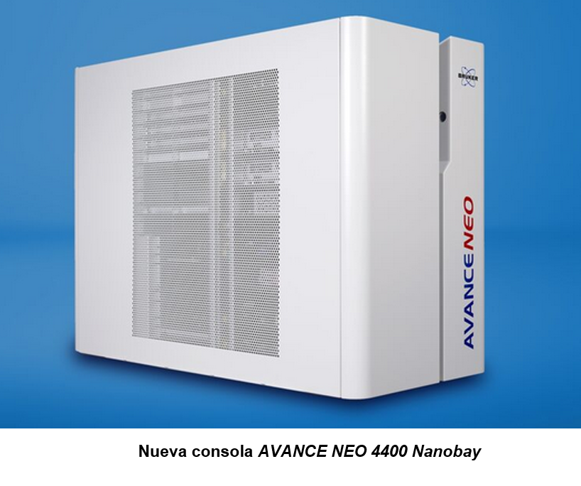 La actual consola de radiofrecuencias de última generación AVANCE NEO 4400 Nanobay permite la recepción de dos FID en paralelo y está equipada con un sistema de shims, que proporciona una inmejorable homogeneidad del campo magnético.