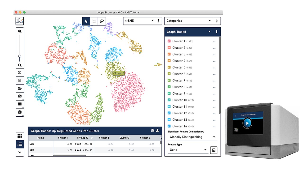 La Plataforma de Biología Molecular-ACTI dispone del sistema Chromium Controller de 10x Genomics adquirido gracias a la cofinanciación obtenida en la convocatoria de equipamiento científico-técnico de alto coste FEDER-2018 (Proyecto: “Plataforma de genómica para secuenciación de célula única y masiva”, Ref. EQC2018-005144-P), con el que lleva ya varios meses generando bibliotecas para la secuenciación de transcriptomas completos a partir de célula única (single cell RNAseq).