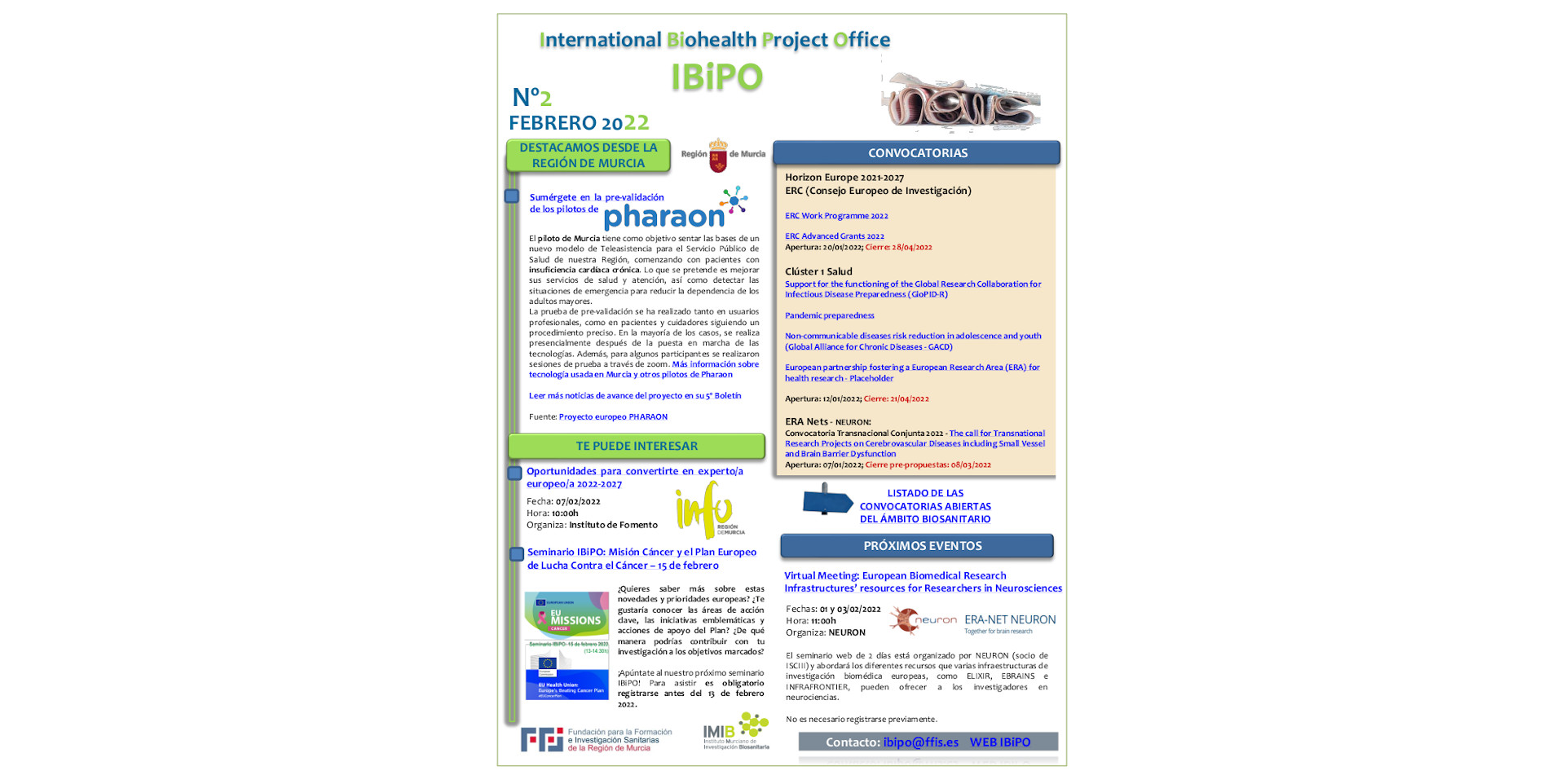 Destacamos los avances del proyecto europeo PHARAON. La prueba de pre-validación del piloto de Murcia se ha realizado tanto en usuarios profesionales, como en pacientes y cuidadores siguiendo un procedimiento preciso. Este tiene como objetivo sentar las bases de un nuevo modelo de Teleasistencia para el Servicio Público de Salud de nuestra Región, comenzando con pacientes con insuficiencia cardíaca crónica. Lo que se pretende es mejorar sus servicios de salud y atención, así como detectar las situaciones de emergencia para reducir la dependencia de los adultos mayores.
