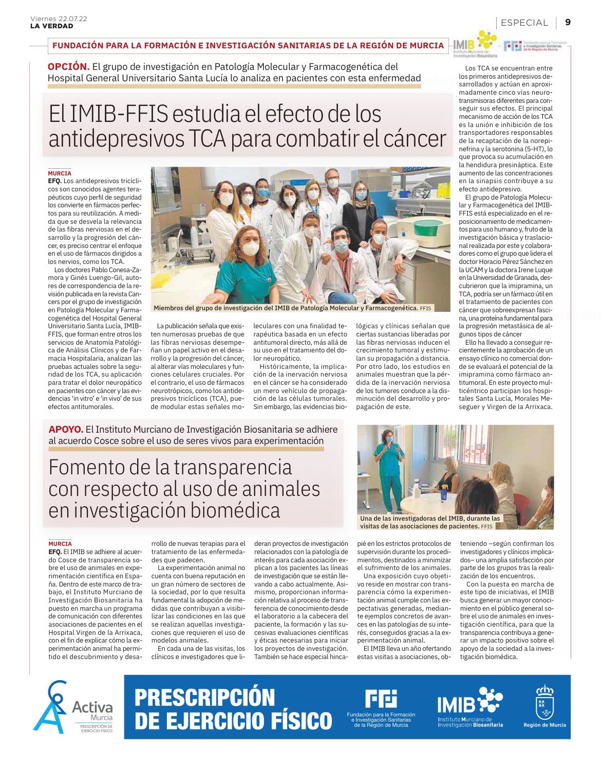 El IMIB-FFIS estudia el efecto de los antidepresivos TCA para combatir el cáncer.