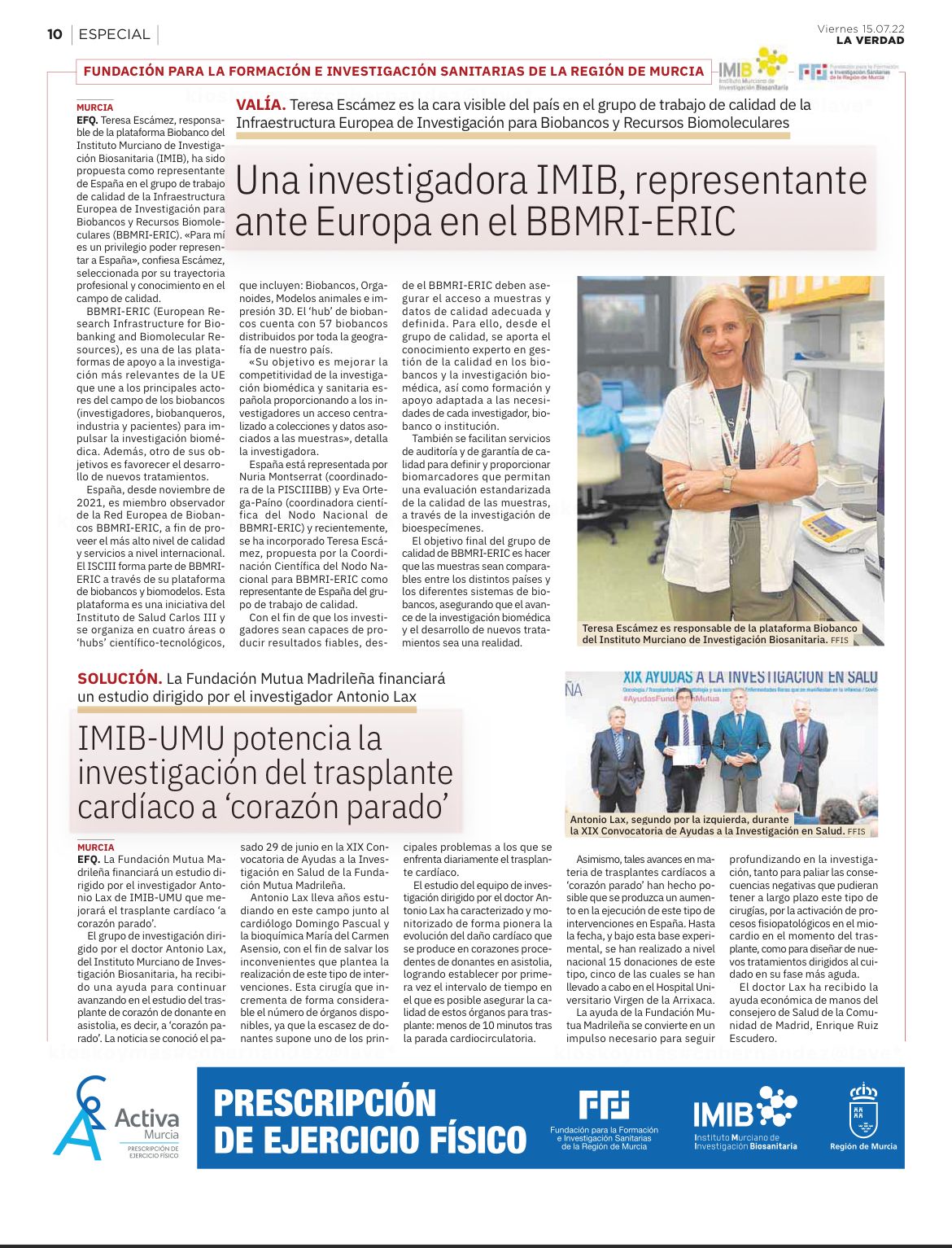 Una investigadora del IMIB, representante ante Europa en el BBMRI-ERIC