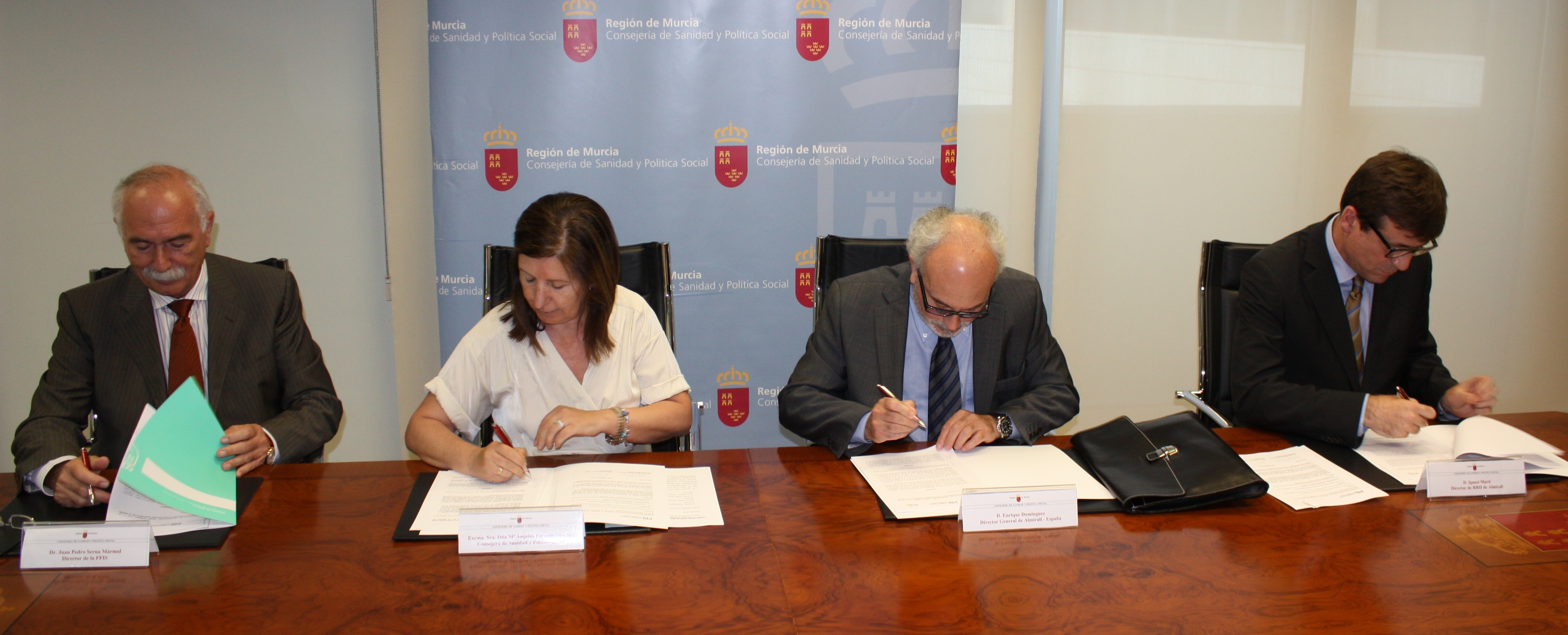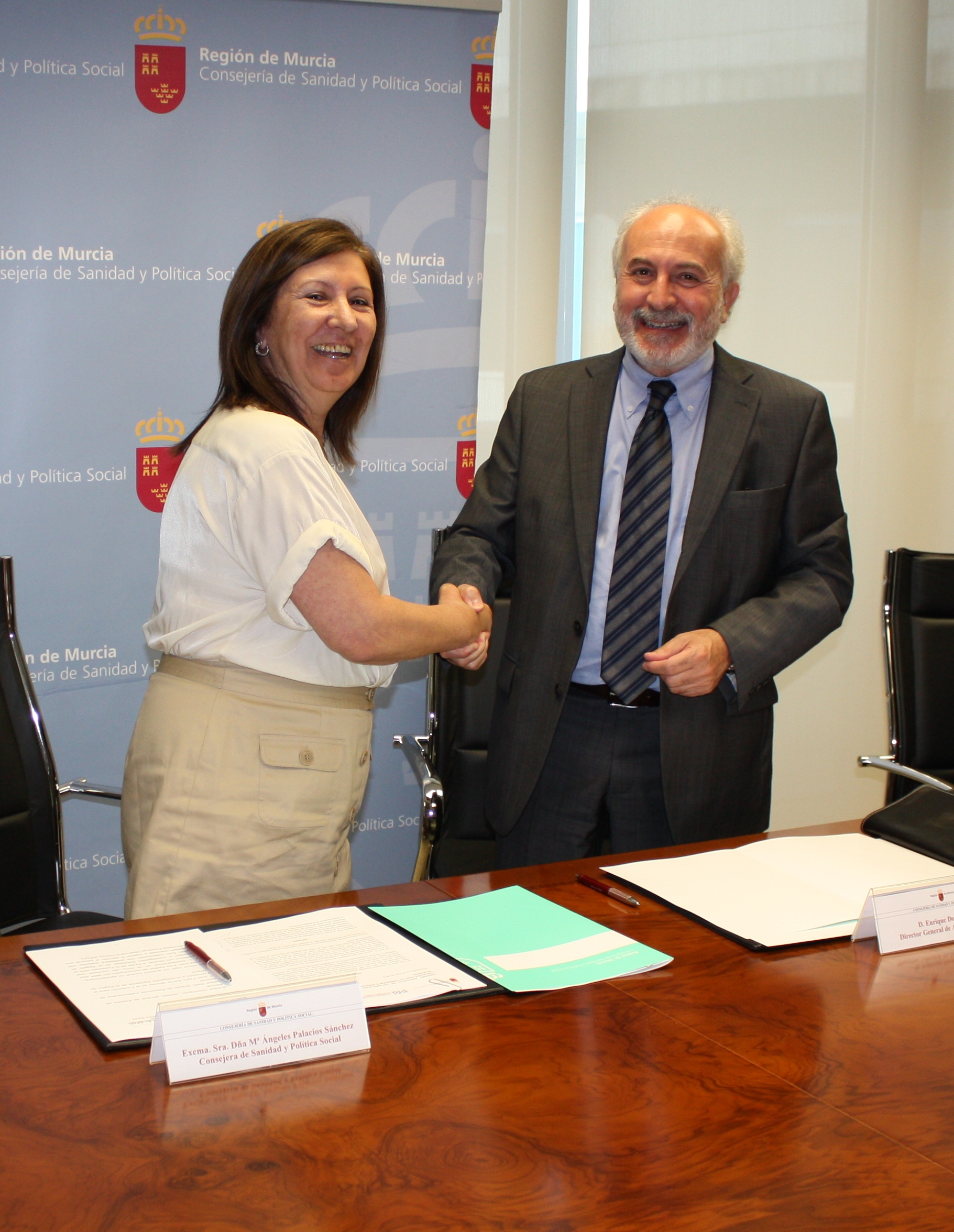La consejera de Sanidad y Política Social, María Ángeles Palacios, suscribió un convenio de colaboración con el laboratorio Almirall para mejorar la atención asistencial a aquellas personas que tienen Enfermedad Pulmonar Obstructiva Crónica (EPOC) ya que, según los últimos datos regionales, uno de cada seis murcianos mayores de 40 años desconoce que sufre esta patología.